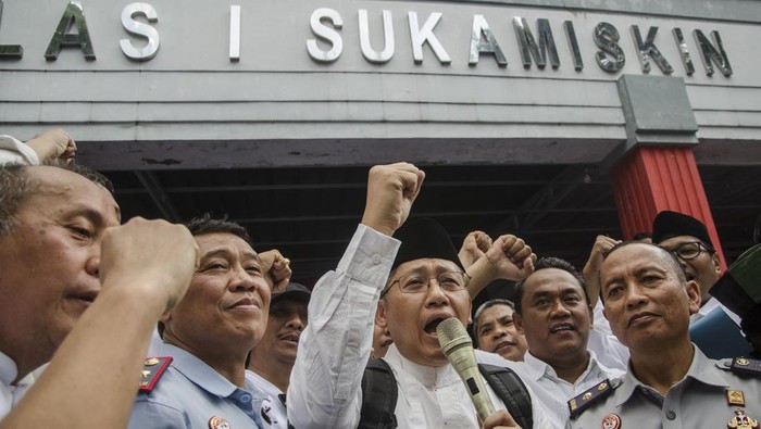 Saat keluar, ia langsung menjumpai para simpatisannya yang menunggu di depan pintu lapas.