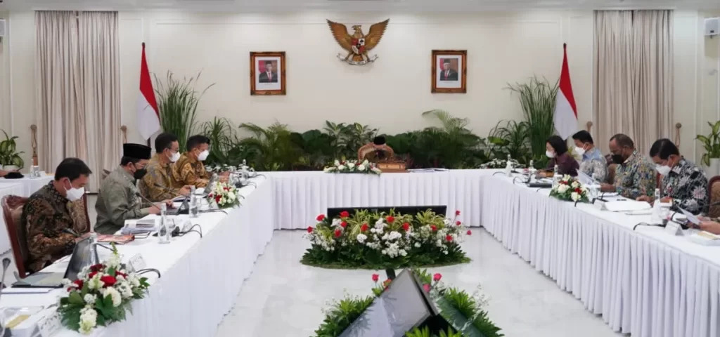 Hadir pula dalam rapat koordinasi ini di antaranya Menko PMK Muhadjir Effendy, Menteri Keuangan Sri Mulyani Indrawati, Menteri Kesehatan Budi Gunadi Sadikin, Wakil Menteri Agama Zainut Tauhid Sa’adi, Wakil Menteri Pekerjaan Umum dan Perumahan Rakyat John Wempi Wetipo, Kepala Staf Kepresidenan Moeldoko. (Dede).