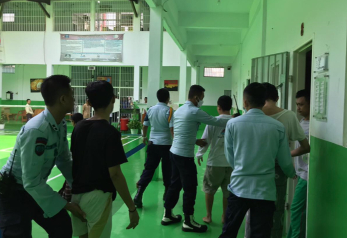 Lembaga Pemasyarakatan Kelas IIA Cikarang melakukan kegiatan sidak penggeledahan kamar hunian terduga pelaku DN. DN merupakan warga binaan Lapas Cikarang yang terbukti menggunakan Hp dan Melakukan Penipuan.