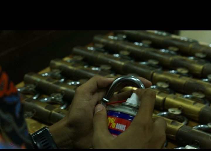 Satu per satu, badan gembok dibersihkan dengan menyemprotkan cairan anti karat ke permukaan dan lubang gembok. Setelah Gembok terlihat bersih, petugas melakukan uji coba satu per satu untuk memastikan gembok dan kunci tidak ada yang macet.