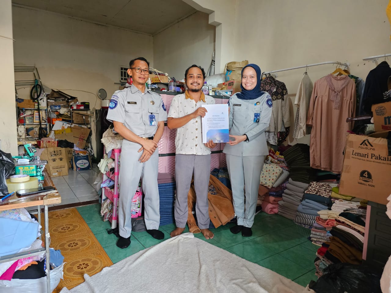 Kepala Jasa Raharja Perwakilan Tangerang Hastuti Retnowulan bersama Penanggung Jawab Samsat Ciputat Taufik Abdul Aziz melakukan kordinasi dengan UMKM Toko Alika yang bergerak dibidang penjualan bahan pakaian dan disambut baik oleh Fajar selaku pemilik toko yang bertempat di Jl Pondok Serut No. 10, Kota Tangerang Selatan, Kec. Serpong Utara, Provinsi Banten pada hari Selasa tgl 11 Juli 2023.