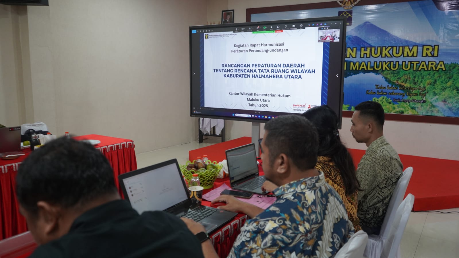 Ternate – Kantor Wilayah Kementerian Hukum Maluku Utara melalui Divisi Peraturan Perundang-undangan dan Pembinaan Hukum melaksanakan Rapat Harmonisasi bersama Pemerintah Kabupaten Halmahera Utara terkait Rancangan Peraturan Daerah (Ranperda) tentang Rencana Tata Ruang Wilayah (RTRW) 2025–2045.