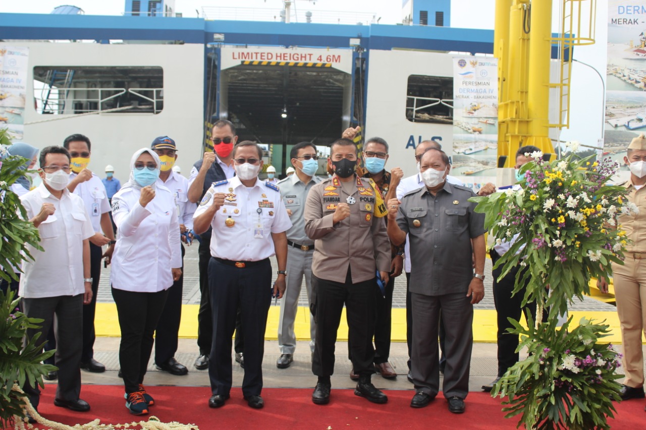 MERAK – Kapolda Banten Irjen Pol Drs. Fiandar hadiri peresmian dermaga IV Merak dan Bakauheni milik PT ASDP Indonesia Ferry (Persero), Senin (12/10/2020).
