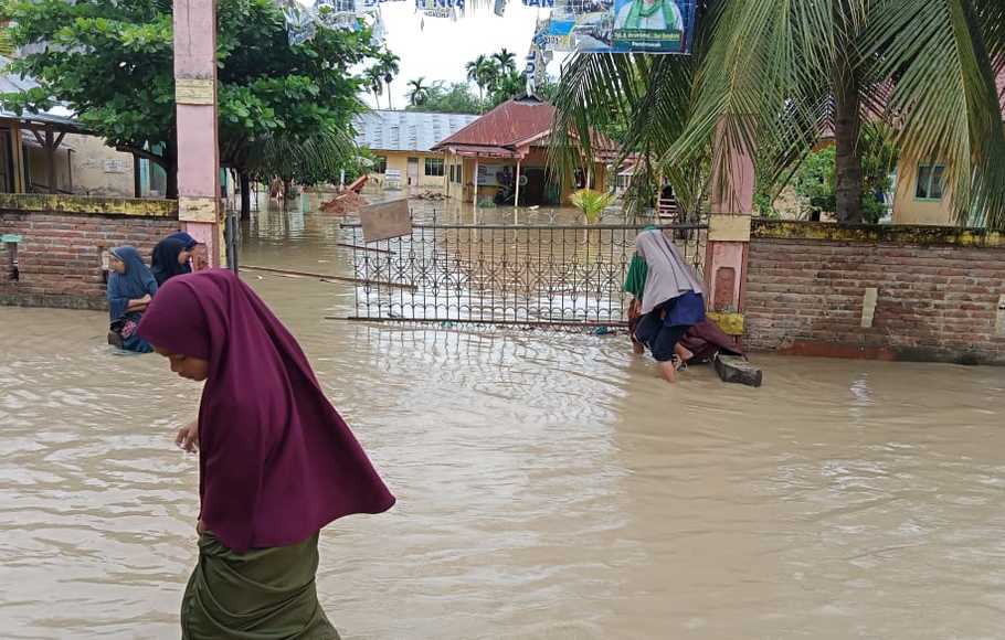 “Peristiwa Banjir ini juga menggenangi 210 hektare sawah, TK Satu Atap, SDN Lhoksukon, SMPN 4 Lhoksukon, Kantor Geucik Desa Kumbang, Kantor Geucik Desa Rayeuk, Kantor Geucik Desa Geulumpang dengan ketinggian air berkisar antara 50-80 sentimeter,” ujar Abdul Muhari, Plt Kepala Pusat Data, Informasi dan Komunikasi Kebencanaan BNPB dalam siaran pers yang diterima Beritasatu.com, Jumat (12/11/2021) dilansir beritasatu.com.