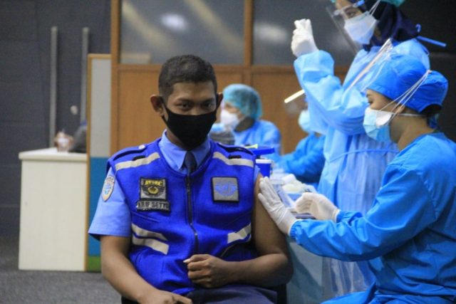 TANGERANG – Sebagai bagian dari petugas layanan publik, personel/staf di bandara mendapat vaksinasi pada program vaksinasi nasional Covid-19 tahap kedua yang dicanangkan pemerintah.