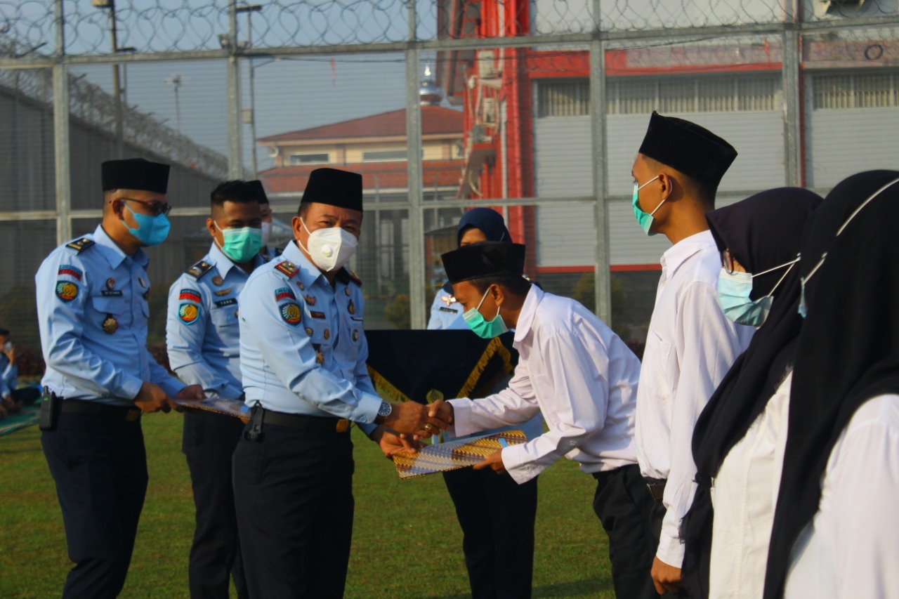 Kepala Lapas Cikarang, Veri menyerahkan langsung SK Remisi kepada perwakilan warga binaan dilanjutkan dengan pembacaan sambutan menteri Hukum dan HAM RI.