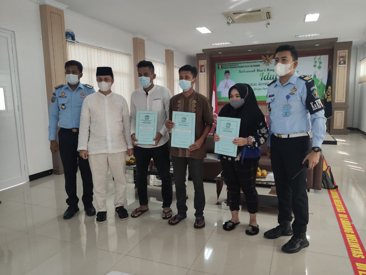 Lanjutnya Karutan menjelaskan bahwa Remisi tersebut berdasarkan keputusan Kementerian Hukum dan HAM Republik Indonesia. Dalam rangka Idul Fitri, kementerian memberikan remisi atau pengurangan masa hukuman kepada narapidana di seluruh Indonesia yang beragama Islam pada Hari Raya Idul Fitri1442 H. Diakhir acara Karutan Serang mengucapkan Selamat kepada warga binaan yang mendapakat Remisi dan saling Memaafkan jikalau ada salah kata maupun perbuatan. (Dede).