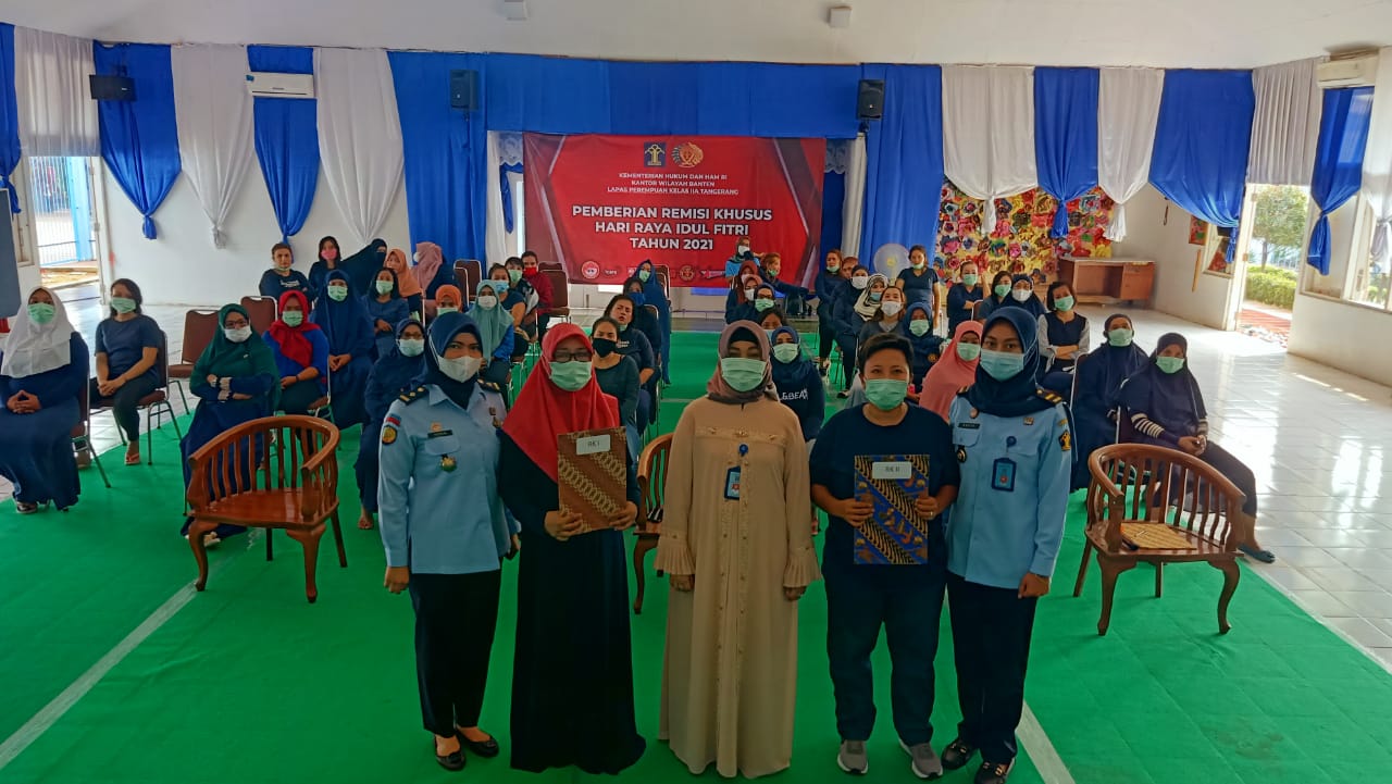 Kegiatan dianjutkan dengan Pelaksanaan Pemberian Remisi Khusus Keagamaan Tahun 2021 kepada 115 Warga Binaan Lapas Perempuan Kelas IIA Tangerang yang beragama Islam Dalam Rangka Hari Raya Idul Fitri 1442 H diikuti oleh Kalapas, Kasie Binadik, Kasubsie Registrasi, Staff Registrasi dan Perwakilan Warga Binaan Penerima Remisi dari masing-masing blok hunian dengan tetap memperhatikan protokol kesehatan.