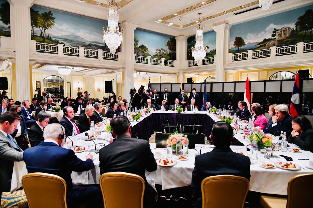 Presiden RI Joko Widodo (Jokowi) dan sejumlah pemimpin negara ASEAN bertemu dengan para pengusaha Amerika Serikat (AS), di Intercontinental the Willard Hotel, Washington DC, Kamis (12/05/2022).