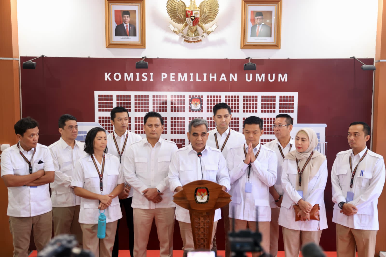 JAKARTA— Partai Gerindra secara resmi telah menyerahkan 580 daftar calon legislatif (caleg) ke Komisi Pemilihan Umum (KPU), Sabtu (13/5). Penyerahan dipimpin oleh Sekjen Partai Gerindra Ahmad Muzani beserta jajaran DPP Partai Gerindra seperti Waketum Sugiono, Budi Djiwandono, Tomy Djiwandono, Rahayu Saraswati, Ketua DPP Hj Himatul Aliyah, Prasetyo Hadi dan lainnya.