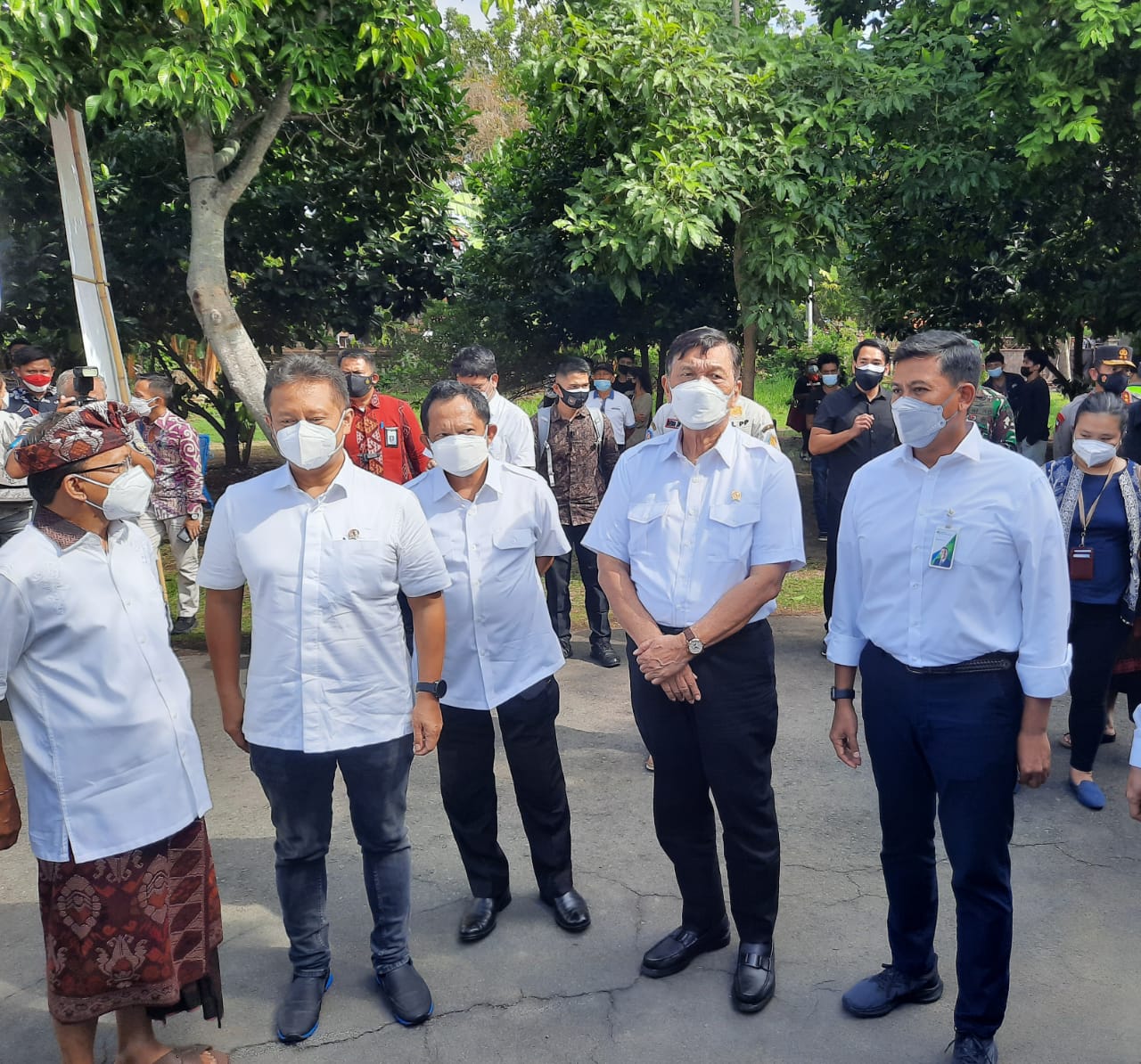 Menteri Koordinator Bidang Maritim dan Investasi Luhut Binsar Pandjaitan, Menteri Dalam Negeri Tito Karnavian, Menteri Kesehatan Budi Gunadi, dan Gubernur Bali Wayan Koster dengan didampingi Direktur Utama BPJAMSOSTEK, Anggoro Eko Cahyo, juga menyempatkan diri mengunjungi gelaran program “Vaksinasi Bersama BPJAMSOSTEK” ini. Setelah meninjau pelaksanaan vaksinasi, Menko Luhut menyampaikan bahwa vaksinasi di wilayah Provinsi Bali ini sudah sangat baik, dengan capaian di atas 90% sudah tervaksinasi, namun masih belum memperoleh hasil yang diharapkan. Dirinya menyoroti 2 kunci utama untuk mendukung program vaksinasi yang sudah sukses, yaitu Isolasi Terpadu (Isoter) dan membatasi kegiatan yang melibatkan massa dalam jumlah besar, khususnya di Provinsi Bali untuk kegiatan keagamaan.