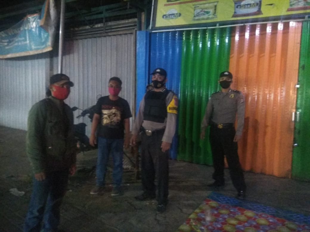 SERANG- Polsek Serang Polres Serang Kota Polda Banten melakukan patroli malam di Pasar Rau Kota Serang, Sabtu (12/09/2020).