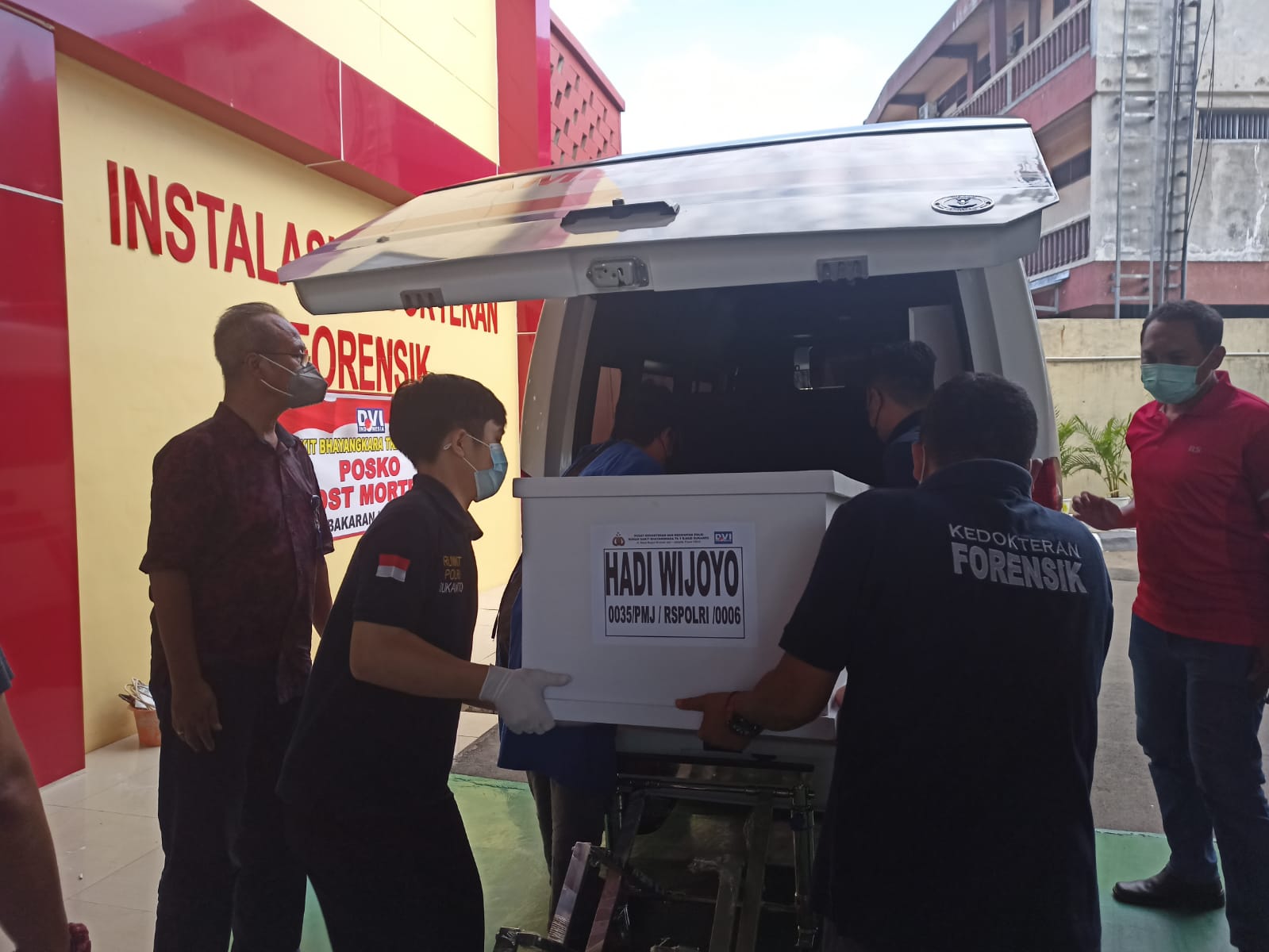 Jenazah Hadi Wijoyo berhasil teridentifikasi berdasarkan sidik jari, bekas luka di alis kanan, dan tato di punggung tangan kiri. Selanjutnya jenazah diserahterimakan kepada keluarga korban dan dimakamkan hari ini di TPU Leuwiliang Bogor.