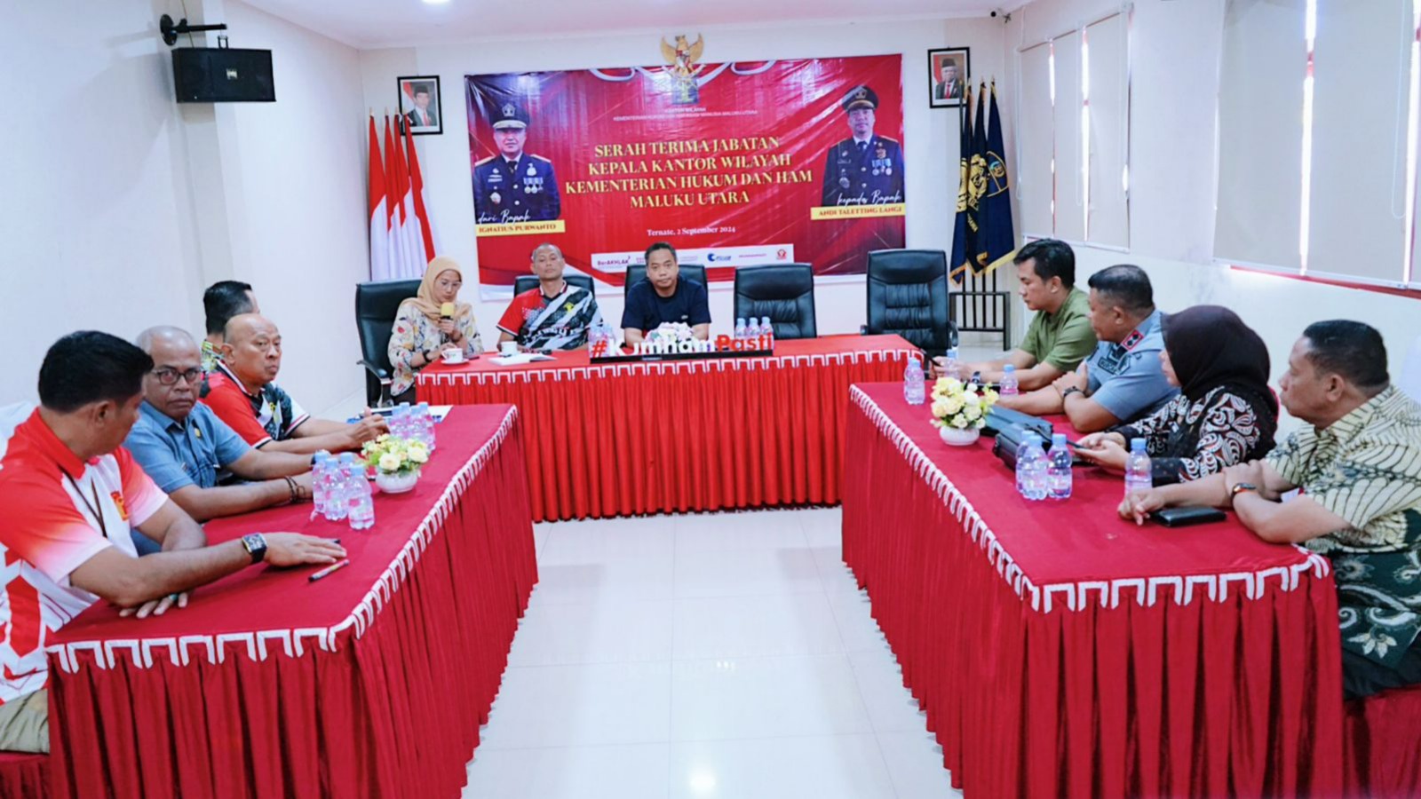 Ternate- Kakanwil Kemenkumham Malut, Andi Taletting Langi didampingi oleh Kepala Divisi Keimigrasian, Ian Fidihanto Markos, Kepala Divisi Pelayanan Hukum dan HAM, Aisyah Lailiyah mengadakan pertemuan dengan seluruh Kepala Unit Pelaksana Teknis (UPT) secara hybrid. Dihadiri secara langsung KUPT Se-Ternate di Aula Gamalama Kanwil Malut dan UPT luar kota hadir secara virtual, Jum’at (13/09/2024).