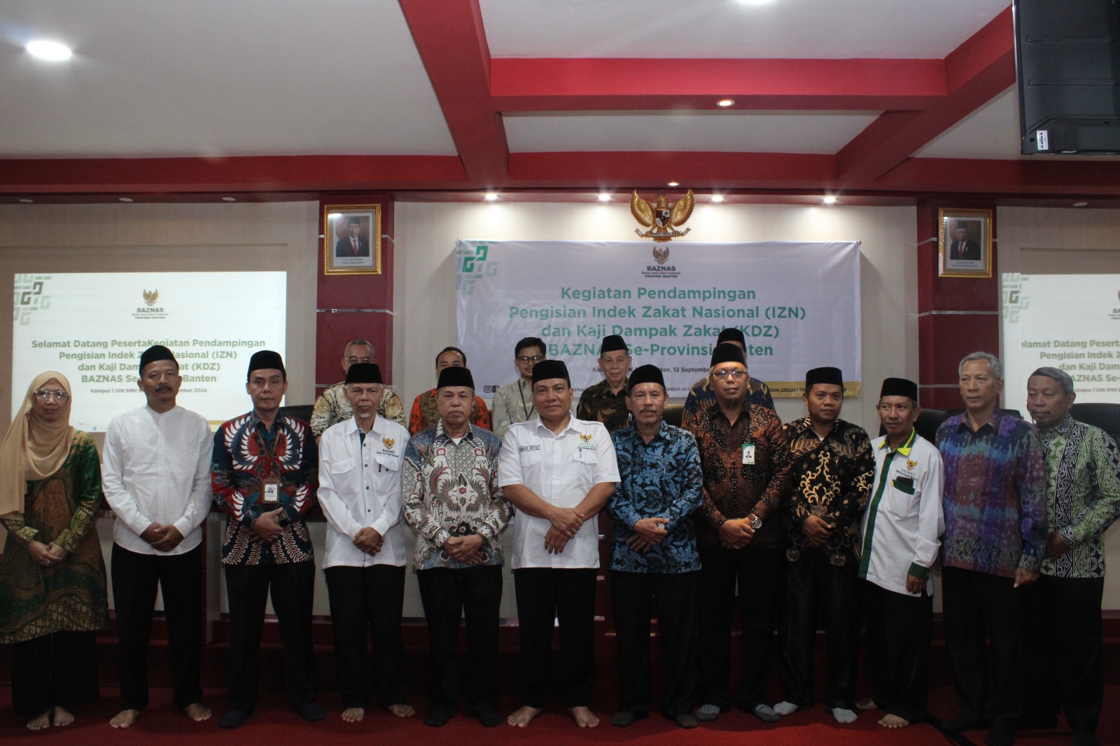 SERANG – Dalam rangka optimalkan kinerja, Badan Amil Zakat Nasional (BAZNAS) Provinsi Banten melaksanakan pendampingan pengisian Indeks Zakat Nasional (IZN) dan Kaji Dampak Zakat (KDZ) bersama BAZNAS Kab/Kota se-Provinsi Banten. Pendampingan berjalan sehari full oleh Tim Direktorat Kajian dan Pengembangan Baznas RI pada 12 September 2024 di Aula Kampus I UIN SMH Banten.