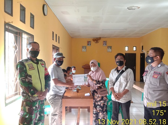 LEBAK – Bhintara Pembinaan Keamanan dan Ketertiban (Bhabinkamtibmas) Polsek Bayah Polres Lebak Bripka Fuath Ramdhani dan Babinsa Koramil 0315/Bayah Serma Sunarya melaksanakan pendampingan penyaluran Bantuan Langsung Tunai (BLT) tahap 10 dan 11  dari Dana Desa (DD) Tahun 2021 di Kantor Desa Sawarna Timur, Kecamatan Bayah Kabupaten Lebak Provinsi Banten, Sabtu (13/11/2021) Dikutip Bungasbanten.id – Group siberindo.co