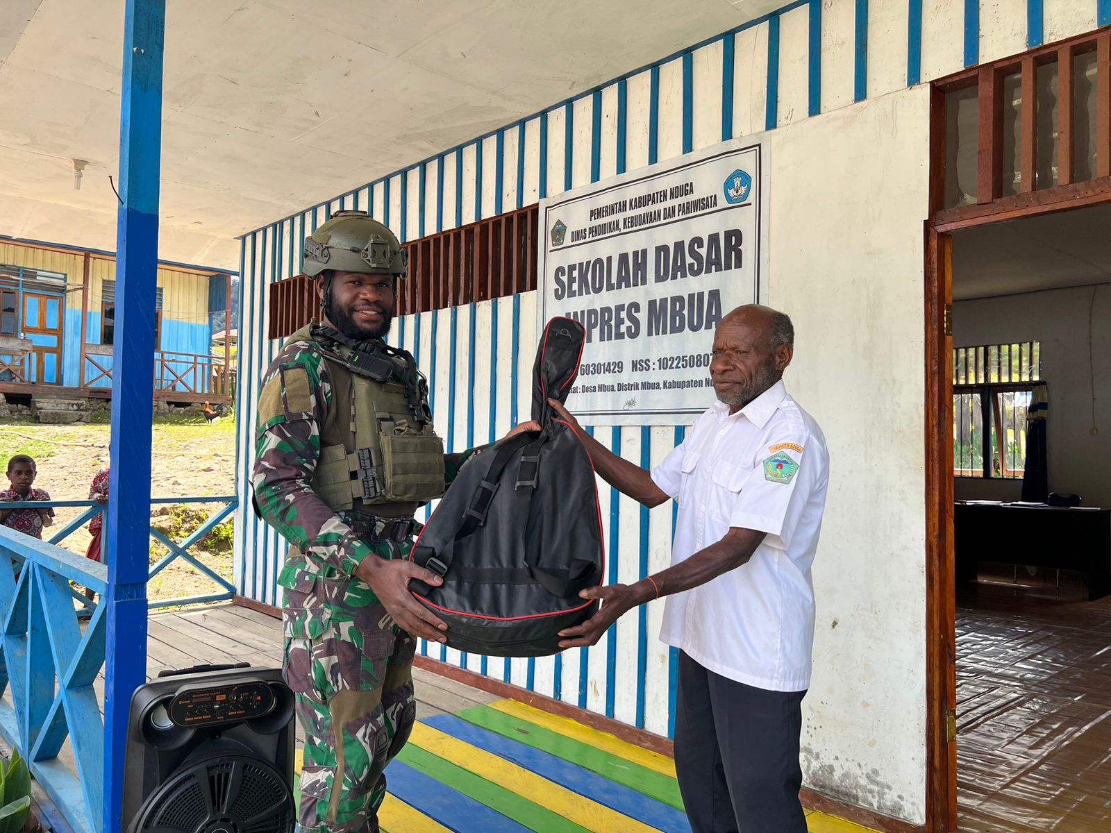 Dengan tetap mengutamakan keamanan selama kegiatan, telah terjadi interaksi komunikasi yang harmonis antara para Prajurit TNI dengan para guru dan siswa di gedung SD Inpres Mbuwa. Dalam komunikasi tersebut, para Prajurit Satgas Yonif 432 Kostrad, menyampaikan amanah Kasad melalui pemberian bantuan berupa perlengkapan sekolah dan seperangkat alat musik yang diharapkan dapat mendukung kelancaran proses belajar mengajar. Lebih lanjut, Kepala SD Inpres Mbuwa, atas nama Bapak Anton Tabuni, merespons penyaluran bantuan Kasad tersebut dengan menyampaikan kebahagiaan mereka.