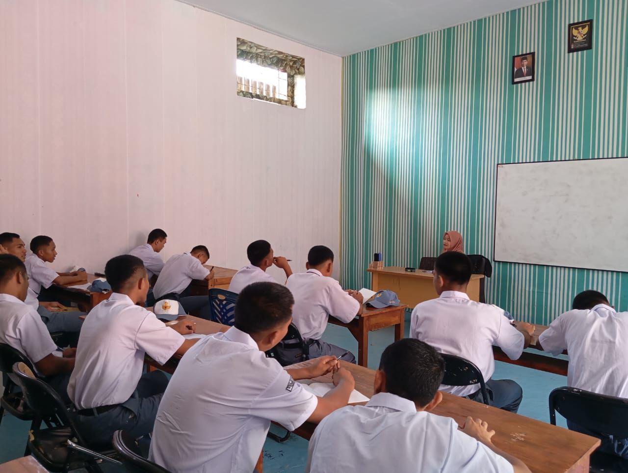 Dari ruang belajar LPKA Ternate, Selasa (12/11), terpantau anak binaan yang mengenakan seragam sekolah seperti umumnya sedang mengikuti pendidikan formal.