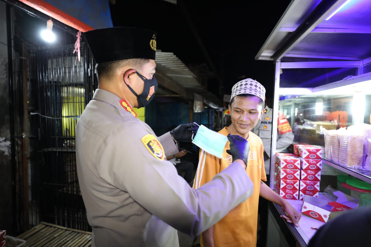 Siberindo.co – Kapolresta Tangerang Kombes Pol Wahyu Sri Bintoro mendatangi Pasar Kresek, Kecamatan Kresek, Kabupaten Tangerang, Rabu (13/1/2021). Tujuan Wahyu mendatangi pasar itu pada malam hari adalah untuk memastikan protokol kesehatan dilaksanakan secara konsisten.