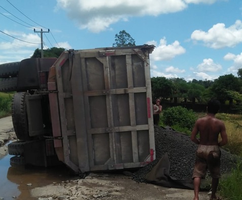 LEBAK – Sebuah mobil truk bermuatan klinker (bahan semen) terguling di Jalan rusak parah yaitu di Jalan Baru Ruas Jalan Simpang – Beyeh, Kecamatan Malingping, Kabupaten Lebak, Provinsi Banten. Senin (14/3/2022) Dikutip Bungasbantn.id – group siberindo.co