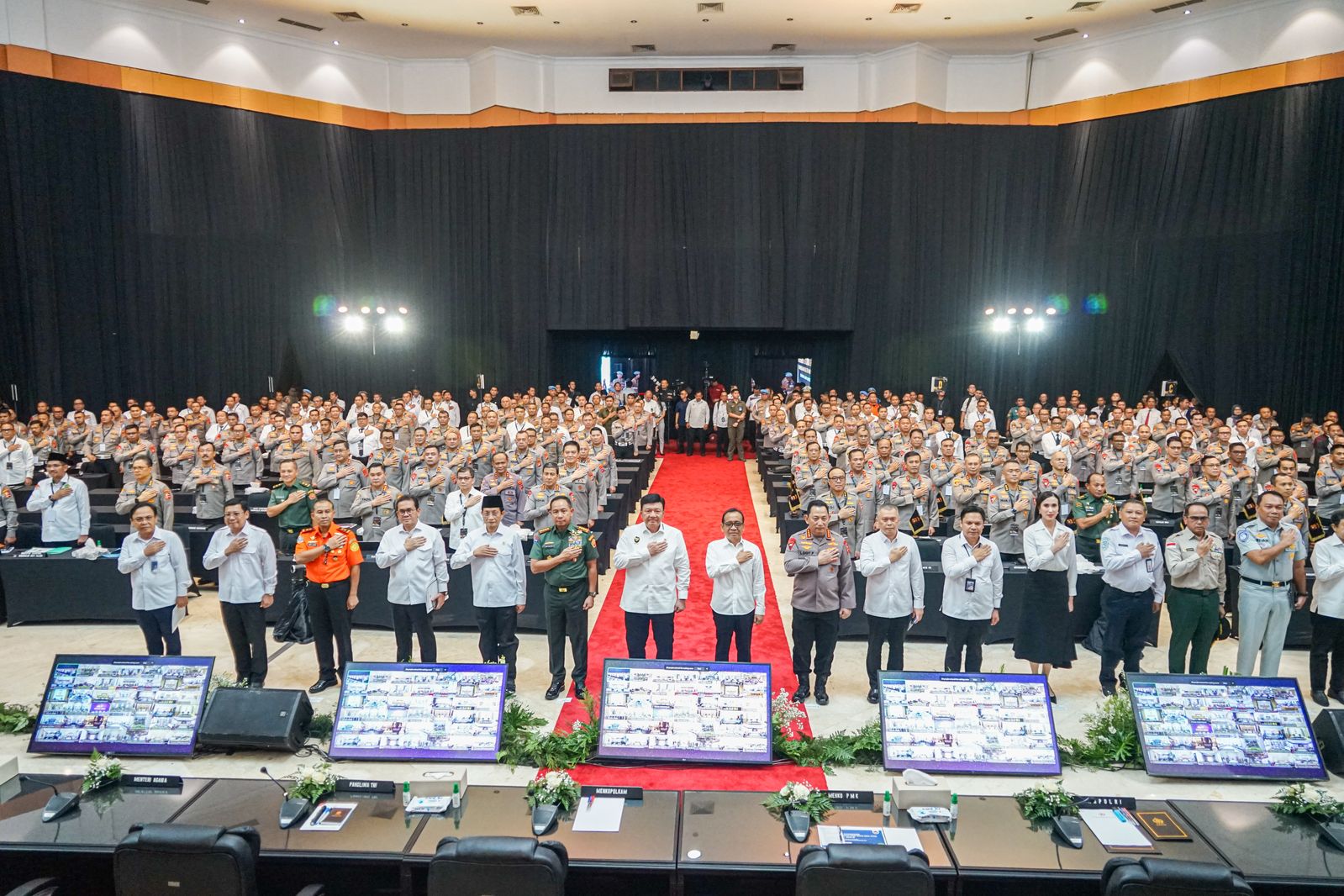 Sejumlah menteri dan kepala lembaga yang hadir dalam rapat koordinasi ini antara lain Kapolri Jenderal Listyo Sigit Prabowo, Panglima TNI Jenderal Agus Subiyanto, Menteri Perhubungan Dudy Purwagandhi, Menteri Agama Nasaruddin Umar, Menteri Perdagangan Budi Santoso, Menteri Pekerjaan Umum Dody Hanggodo, Menteri Pariwisata Widiyanti Putri Wardhana, Kepala Bapanas Arief Prasetyo Adi, Kepala BMKG Dwikorita Karnawati, Kepala Basarnas Marsekal Madya TNI Muhammad Syafii, serta jajaran pejabat tinggi lainnya.