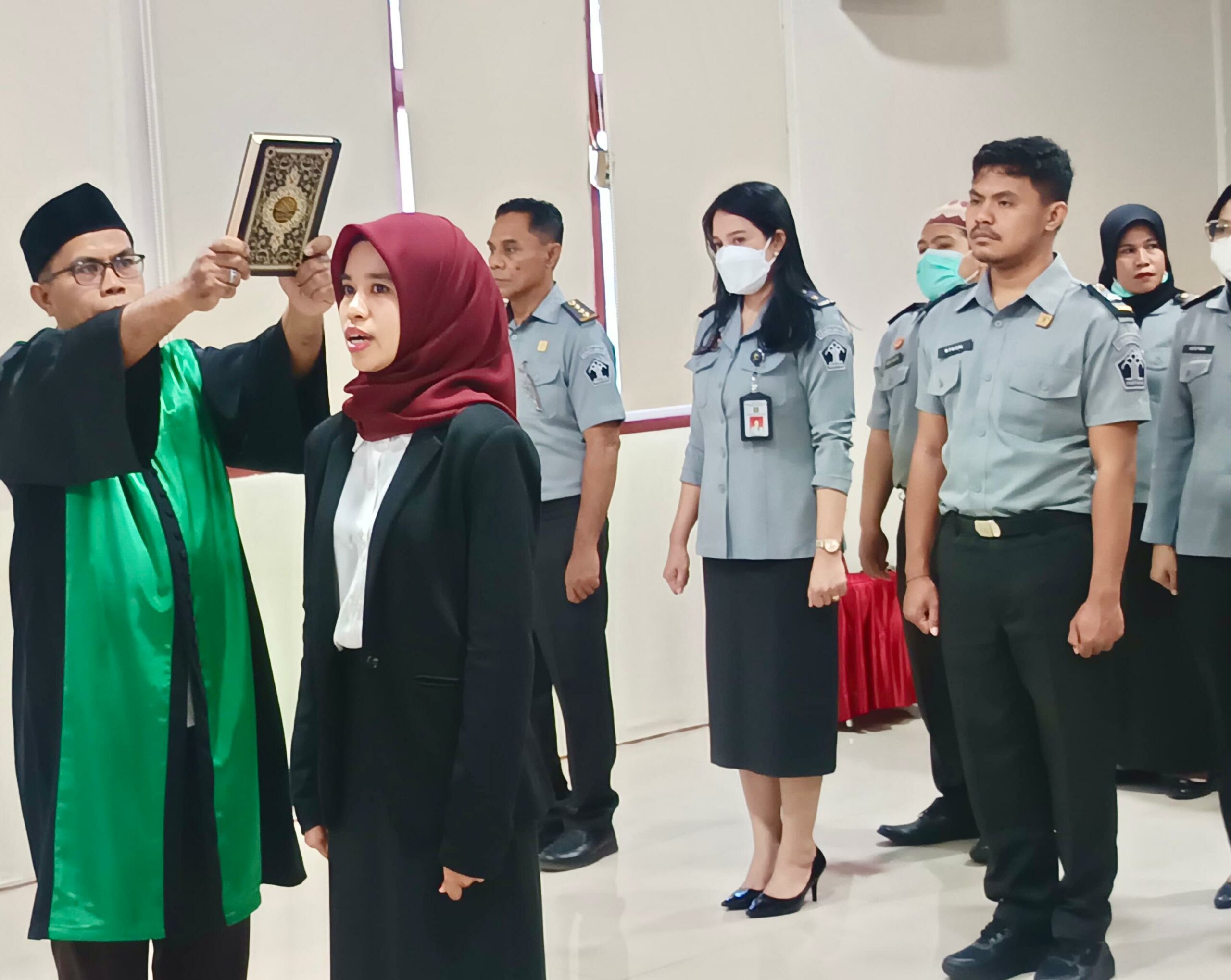 Ternate – Kantor Wilayah (Kanwil) Kementerian Hukum (Kemenkum) Maluku Utara (Malut) menggelar acara pelantikan dan pengambilan sumpah notaris pengganti wilayah kerja Kota Ternate, a.n Rahmania Rajak.