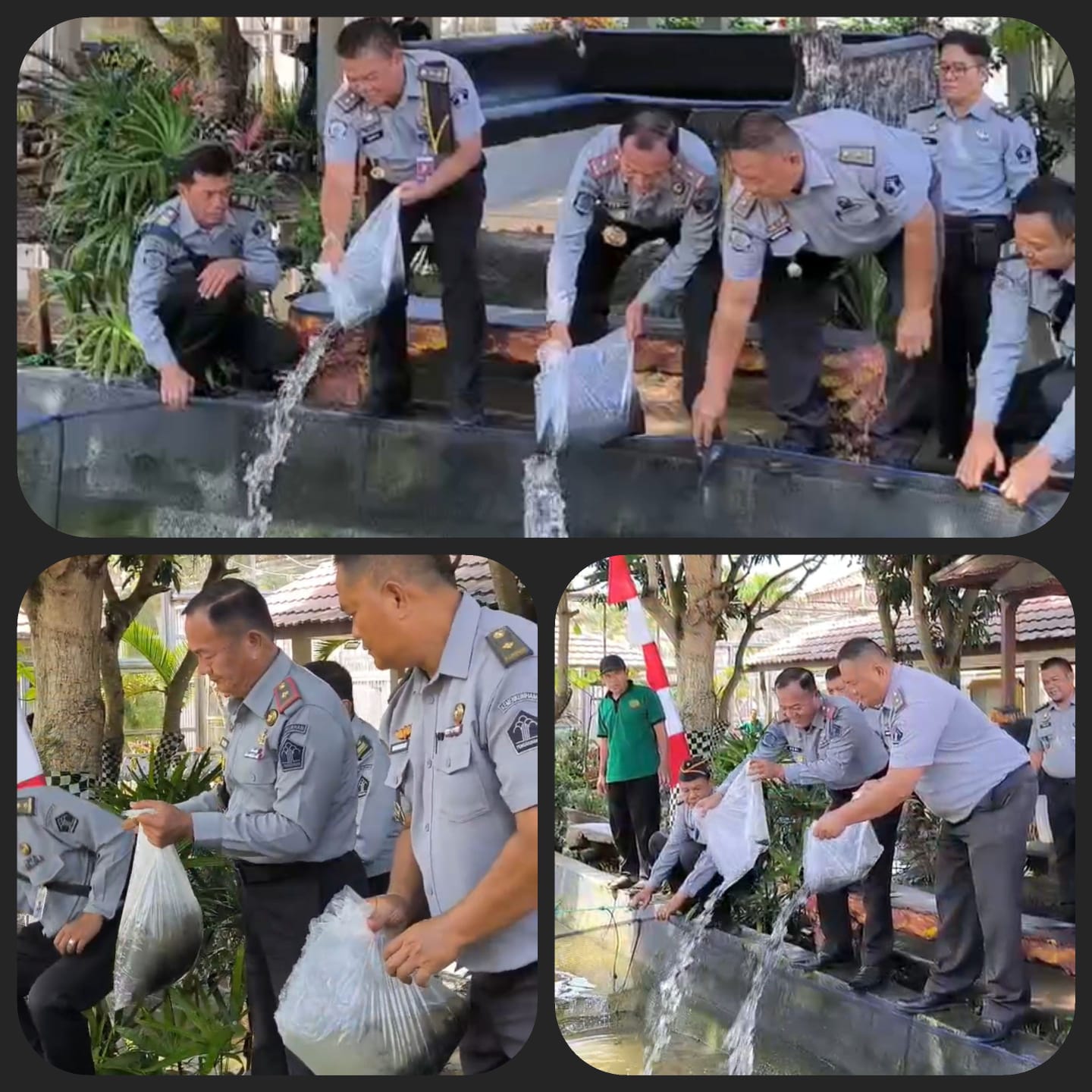 Penebaran Bibit Ikan Lele dilaksanakan langsung Oleh Kalapas dan Pejabat Sruktural Lapas Kelas I Palembang.