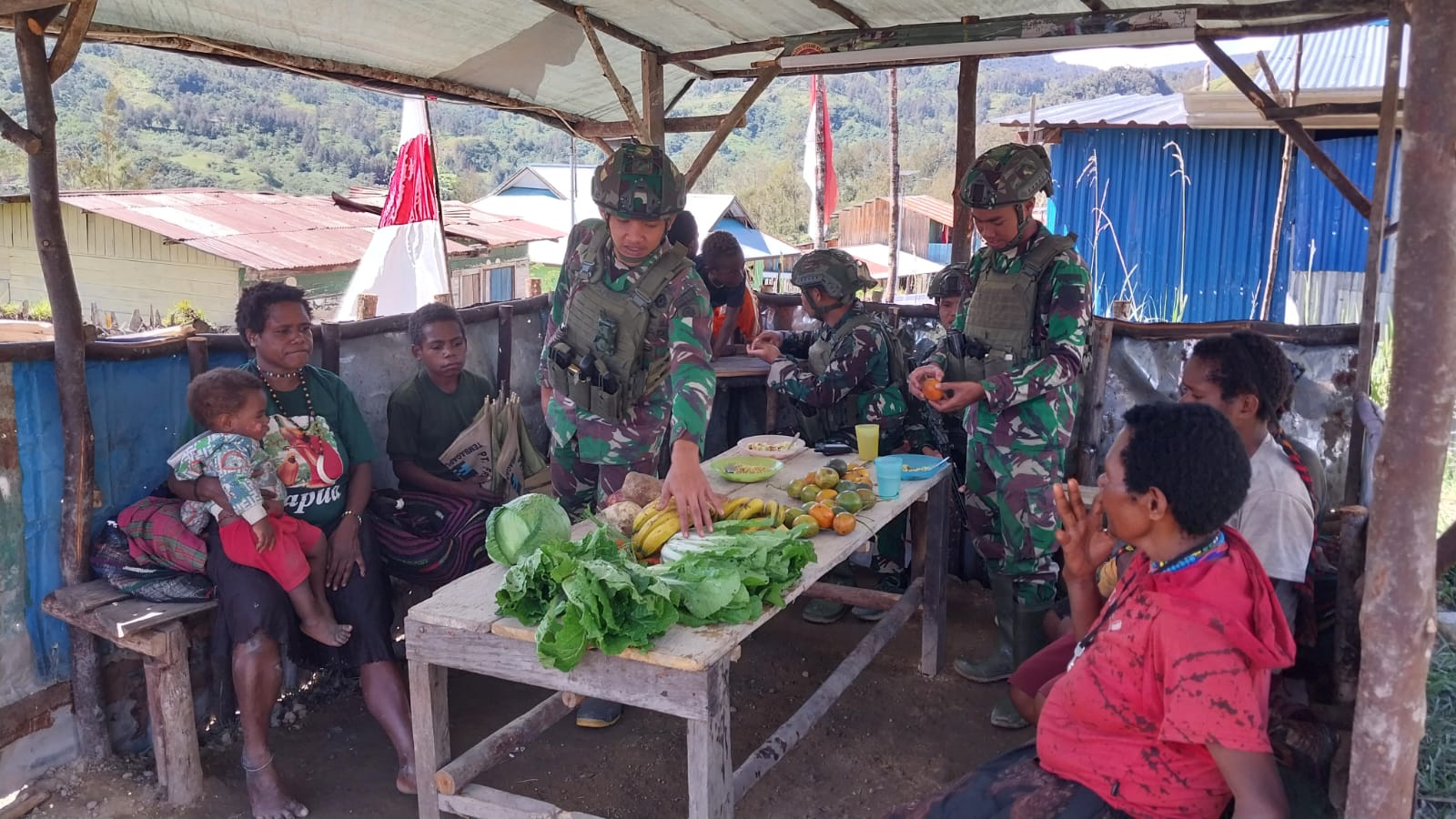 “Kegiatan ini dilaksanakan sebagai bentuk tindakan nyata dan kepedulian kami, dengan memborong hasil tani seperti ini diharapkan dapat menggerakkan Roda perekonomian masyarakat Papua, ” ucap Dansatgas.