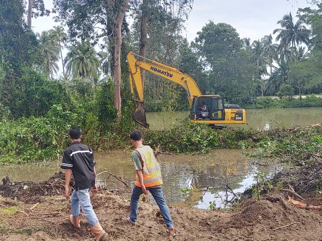 Saat ini, pekerjaan mulai terlihat di lapangan. Terlihat satu unit alat berat jenis excavator melakukan pembersihan semak belukar dan hutan di sepanjang sisi sungai yang akan dilaksanakan pembangunan, kemarin. Kegiatan itu menjadi pusat perhatian masyarakat sekitar, apalagi saat itu, masyarakat sedang tidak melaut.