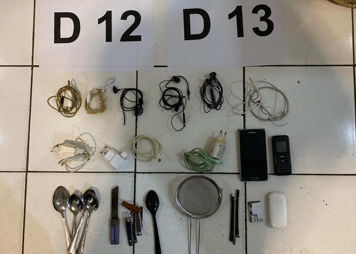 “Adapun barang yang didapat dalam sidak di Blok D kamar 12 dan 13 berupa 3 unit Handphone, 4 unit Charger Hp, 4 unit Headset, 1 unit kabel USB, 2 unit antena Wifi, 1 buah Saringan Kopi, 4 buah Sendok Stainless, 1 buah Sendok Melamin, 2 buah Gunting Kuku, dan 1 buah Sikim,” ungkapnya.