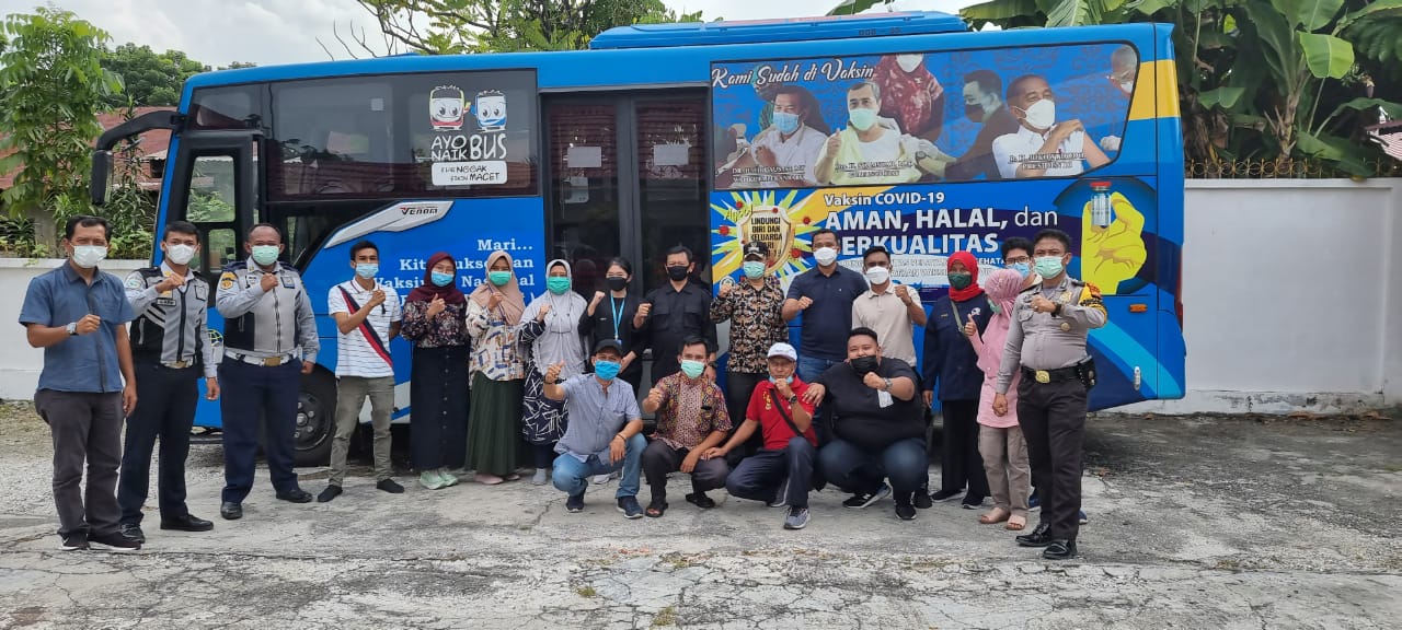 Vaksinasi Covid-19 massal lewat bus vaksinasi keliling Pemerintah Kota Pekanbaru bersama RSD Madani serta Dinas Perhubungan Pekanbaru sebagai fasilitator armada serta media tempat pelaksanakan vaksinasi Covid-19, dilaksanakan di halaman Balai Diklat Koperasi Provinsi Riau Jalan Ronggowarsito, Kelurahan Sukamaju Kecamatan Sail, Sabtu (12/6).