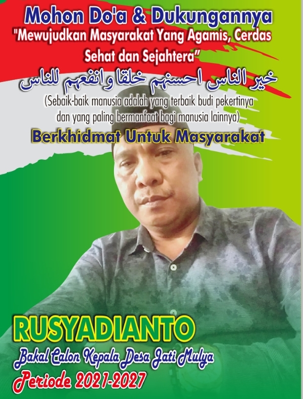 Sosok seorang pemimpin kepala desa jatimulya kecamatan rangkasbitung kabupaten lebak Rusyadianto kembali melanjukan pembangunan untuk warga masyarakatnya. Hal itu dengan ikut kembali dalam kontelasi politik pilkades tahun ini yang diselenggarakan pada bulan september 2021 mendatang secara serentak di 28 kecamatan se-kabupaten lebak.