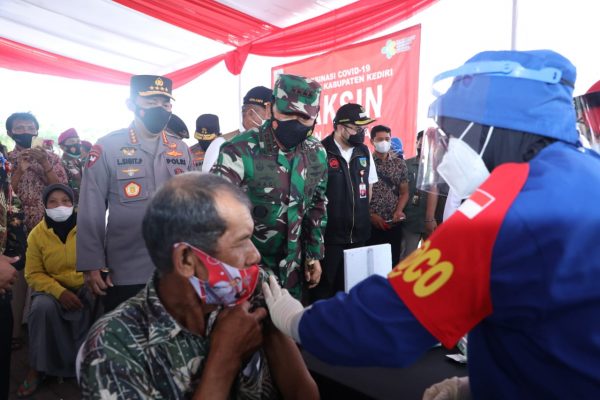 Usai rapat, Panglima TNI, Kapolri dan Kepala BNPB meninjau serbuan vaksinasi Covid-19 yang diikuti oleh 2.000 peserta vaksin untuk lansia dan gabungan masyarakat dari beberapa wilayah dengan rincian 500 peserta dilaksanakan di SLG (Simpang Lima Gumul) dan 1.500 akan disebar di 26 kecamatan di Kabupaten Kediri.