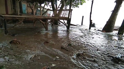 “Kejadiannya mulai Pukul 6.00 WIB, namun puncak air laut naik tertingginya itu sekitar 4 meter pada Pukul 9.00 WIB. Dan menghancurkan bebera tempat duduk dan saung tempat bersantai. Selain itu juga air laut masuk ke dalam warung sehingga merendam beberapa alat rumah tangga ” ujarnya.
