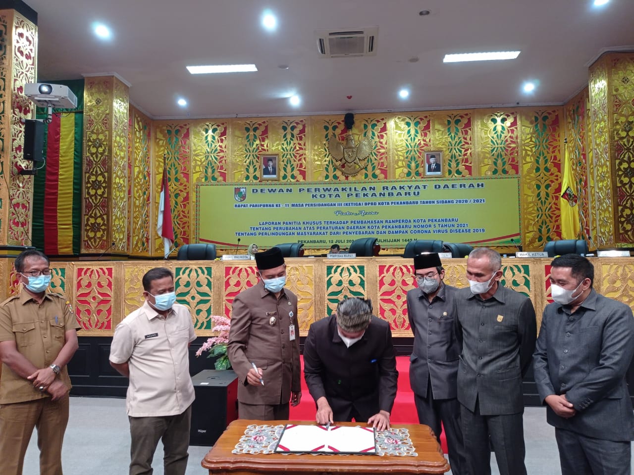 Wawako Pekanbaru Teken Pengesahan Revisi Perda Covid-19