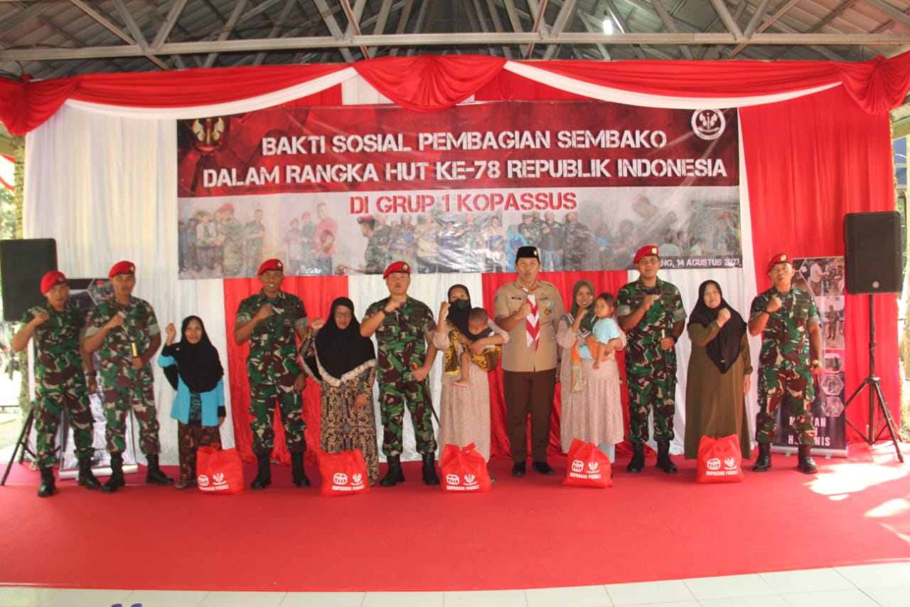 SIBERINDO.CO – Dalam rangka HUT ke-78 Republik Indonesia serta Penanganan dan Pencegahan Stunting, Grup 1 Kopassus melaksanakan Bakti Sosial Pembagian Sembako untuk masyarakat sekitar.