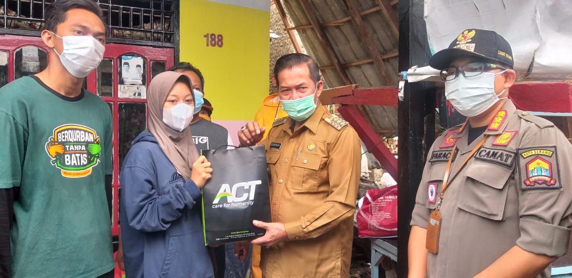 SERANG – Wali Kota Serang Syafrudin bersama jajaran meninjau langsung dan memberikan bantuan kepada korban rumah longsor di Lingkungan Sempu Saroja, RT03/RW15, Kelurahan Cipare, Kecamatan Serang, Kota Serang akibat curah hujan tinggi.