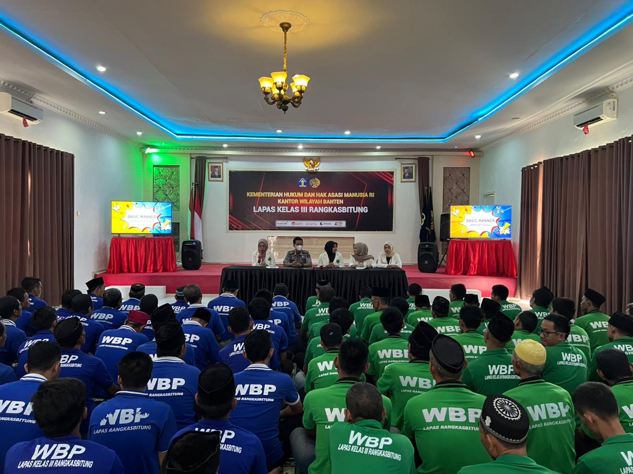 Rangkasbitung – WBP Lapas Rangkasbitung Kanwil Kemenkumham Banten menerima Sosialisasi Bimbingan Klasikal Basic Manner dari Mahasiswa UIN SMH Banten, Senin (14/10)