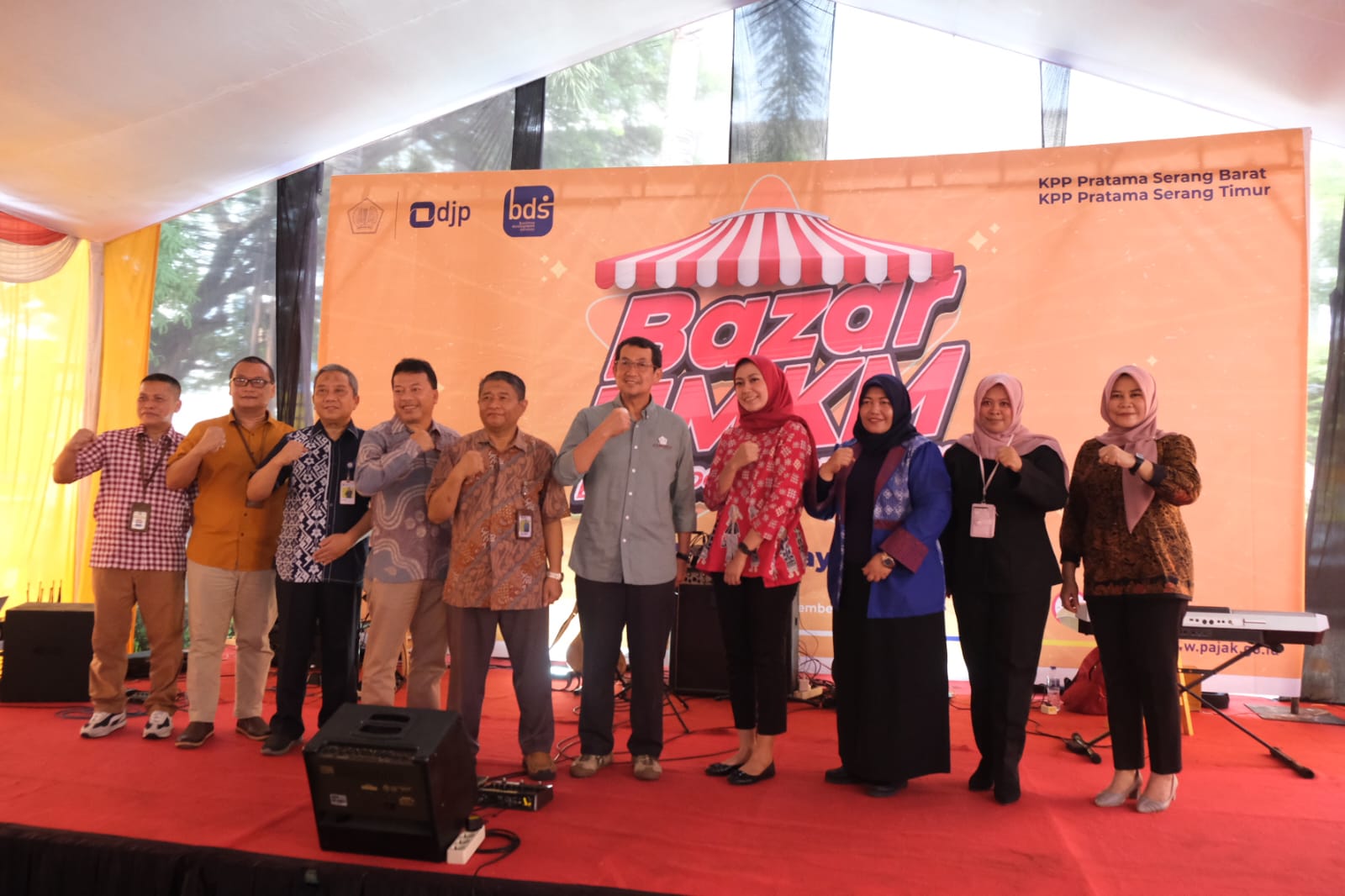 Bazar UMKM dibuka dengan sambutan oleh Kepala KPP Pratama Serang Barat Taufiq, Kepala KPP Pratama Serang Timur Soeharto, dan Kepala Kanwil DJP Banten Cucu Supriatna. “Melalui BDS, DJP berupaya membina dan mendampingi UMKM dengan memberikan berbagai materi pelatihan. Harapannya agar UMKM tumbuh berkembang usahanya dan menguatkan perannya dalam mewujudkan ekonomi kreatif baik tingkat lokal, nasional, bahkan internasional. Dengan demikian, UMKM akan semakin percaya diri dalam menghadapi persaingan usaha sehingga meningkatkan daya saing,” ujar Cucu.