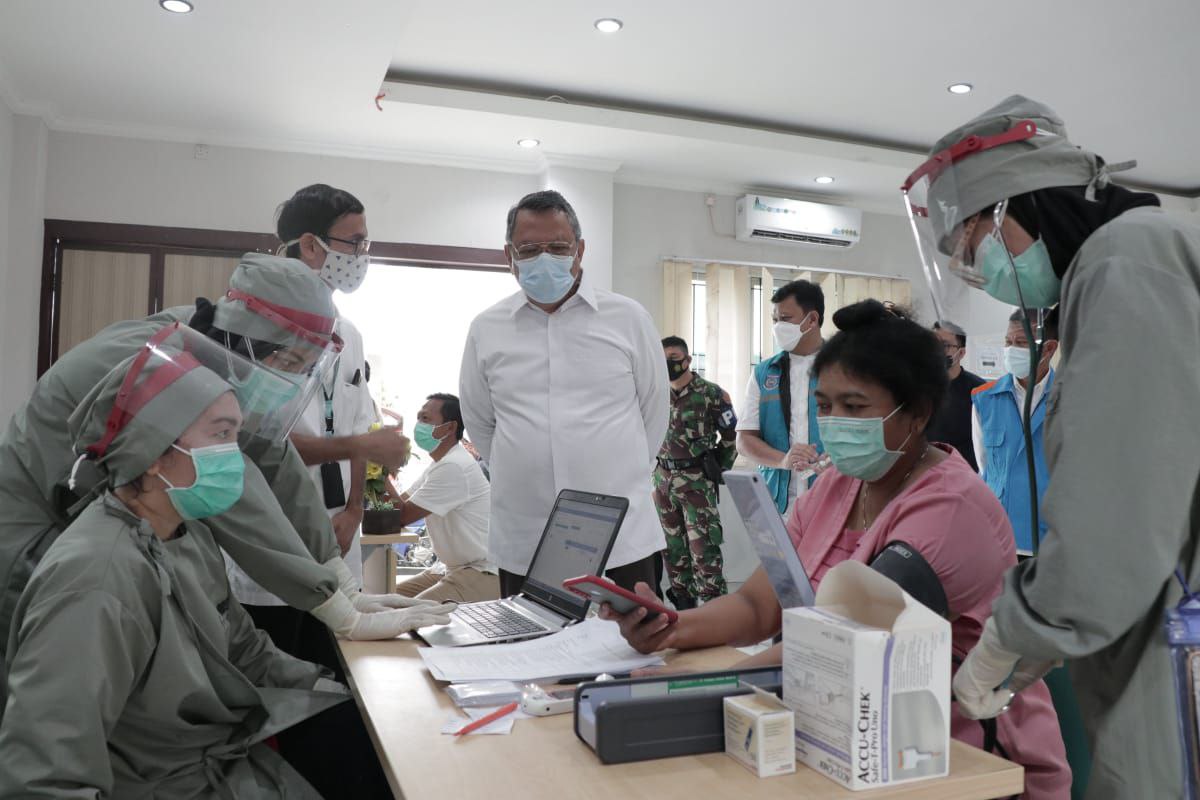 “Pemberian vaksin Covid-19 tahap pertama yang ditujukan untuk tenaga kesehatan. Tadi, saya melihat di Puskesmas Setu, sekarang di RSUD,” terangnya