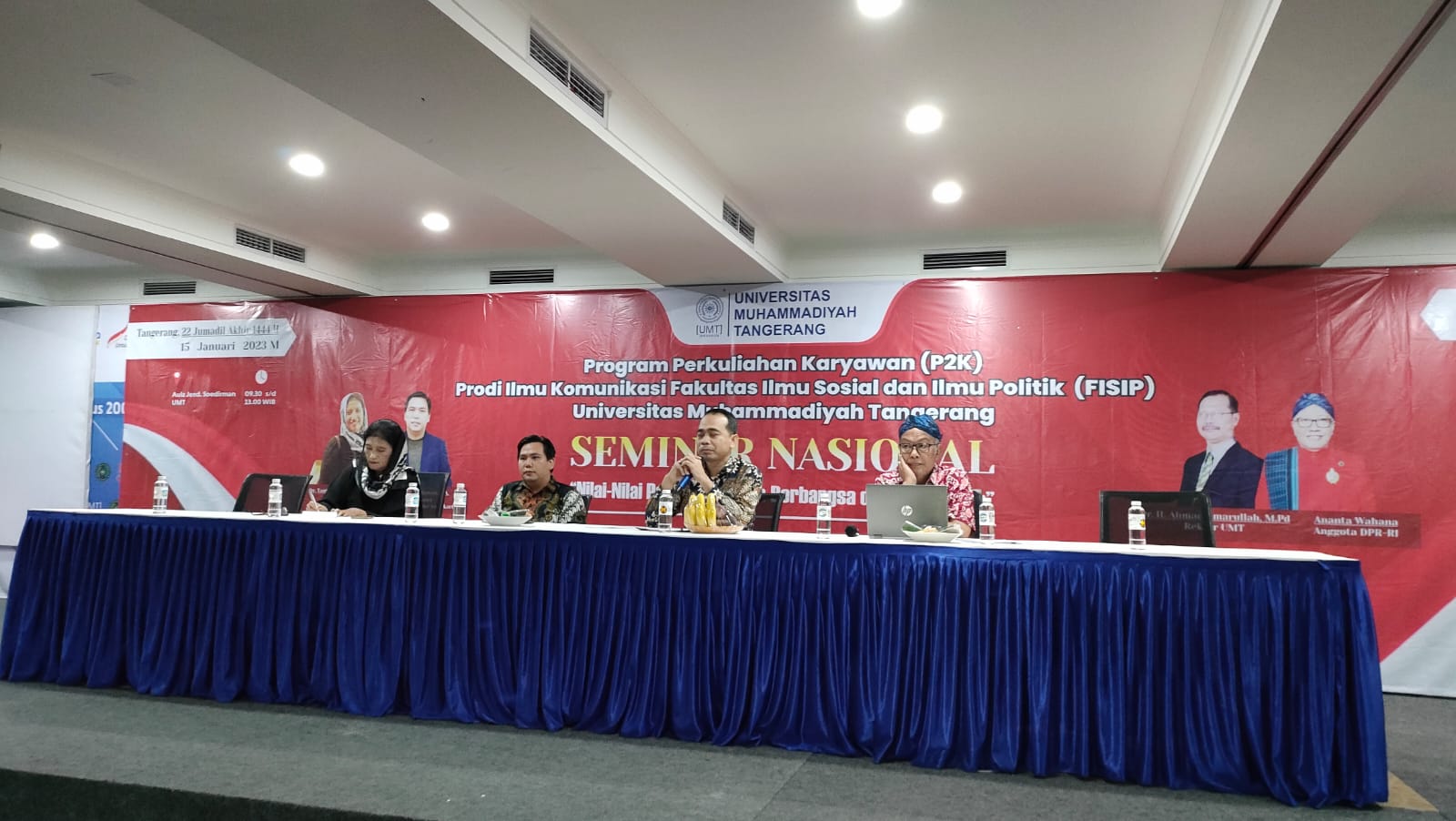 Siberindo.co — Sebanyak 250 Program Studi (prodi) Ilmu Komunikasi Fakultas Ilmu Sosial dan Politik (FISIP) Universitas Muhammadiyah Tangerang (UMT) antusias mengikuti seminar nasional Pancasila. Kegiatan bertema Nilai-nilai Pancasila dalam Berbangsa dan Bernegara tersebut digelar di Aula Jenderal Sudirman, Kampus UMT, Minggu (15/1/2023).