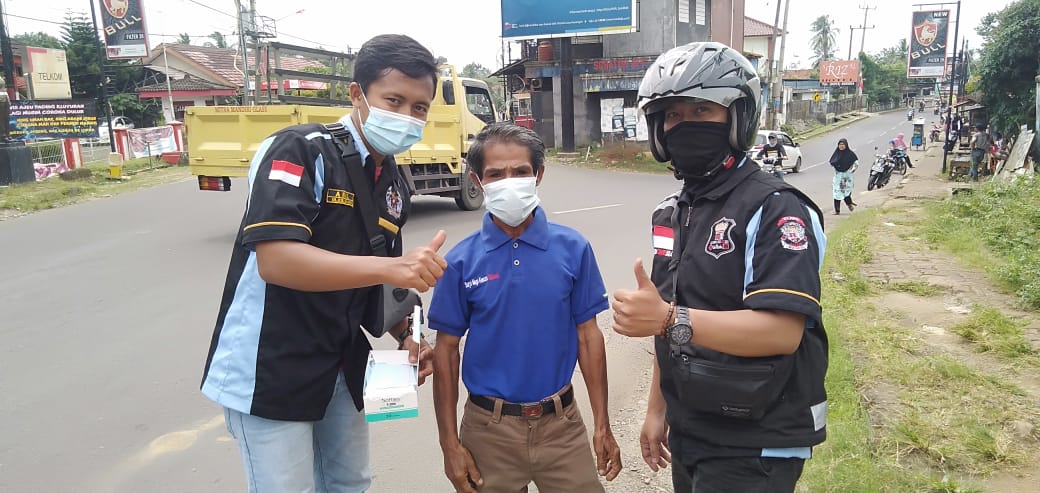 Ketua Umum YRKB Banten Selatan Joni Cobra mengatakan, dalam pembagian masker tersebut diberikan kepada masyarakat yang berkendara di sekitar jalan pasar Labuan.