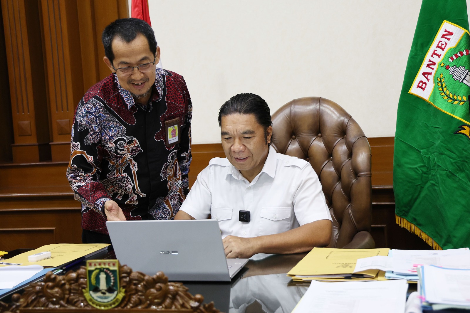 SERANG – Penjabat Gubernur Provinsi Banten Al Muktabar di hadapan Kepala Kantor Wilayah Direktorat Jenderal Pajak Banten Cucu Supriatna, Kepala Bidang Penyuluhan, Pelayanan dan Hubungan Masyarakat Kanwil DJP Banten Mokh. Solikhun serta jajaran perwakilan Kantor Pelayanan Pajak Serang Barat telah berhasil melaporkan SPT Tahunan tahun pajak 2023 secara e-filing melalui laman www.pajak.go.id. Bukti pelaporan SPT Tahunan Penjabat Gubernur Provinsi Banten pun langsung diterima di alamat email pribadi Penjabat Gubernur.