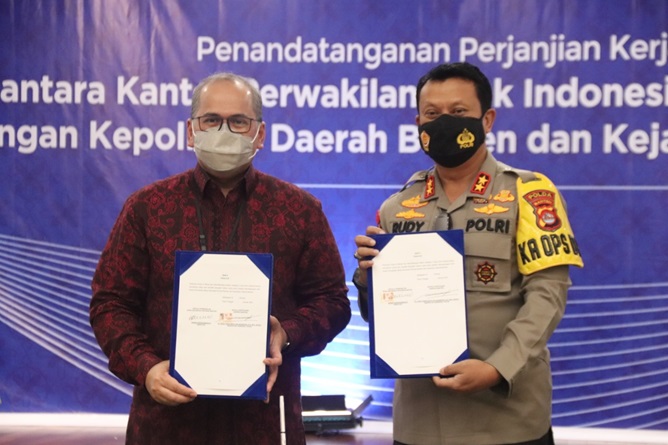 Dalam Penandatanganan Perjanjian kerjasama ini dilakukan oleh Kepala Kantor Perwakilan Bank Indonesia (BI) Provinsi Banten Erwin Soeriadimadja dengan Kapolda Banten Irjen Pol Dr Rudy Heriyanto Adi Nugroho S.H.,M.H.,M.B.A dan Kepala Kejaksaan Tinggi Banten Dr. Asep Nana Mulyana, SH.M.Hum