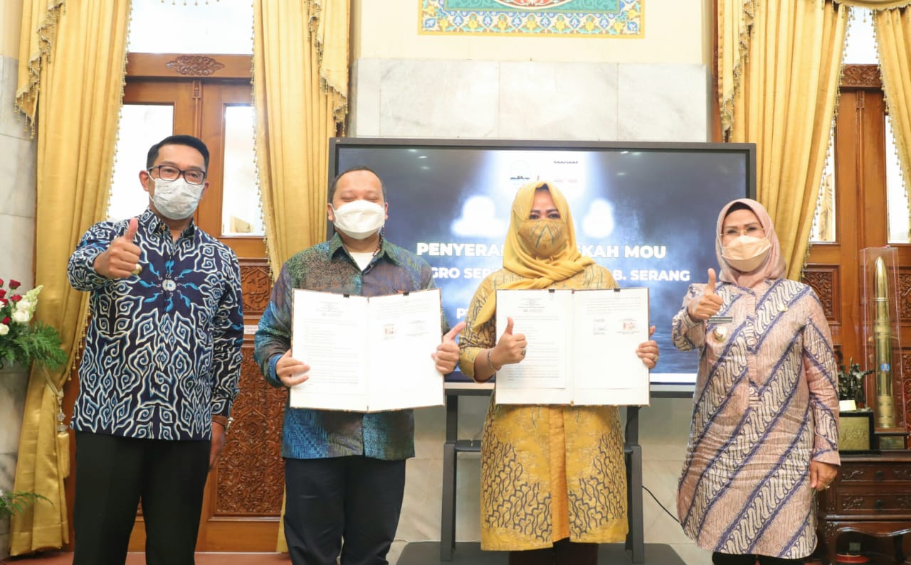Penyerahan memorandum of understanding (MoU) dilakukan di Pendopo Bupati Serang, Kamis (15/5/2021). “Dua perusahaan daerah akan saling kerja sama mulai dari permodalan hingga pemasaran dan pemanfaatan teknologi. Insya Allah, membawa berkah untuk masyarakat Kabupaten Serang,” kata Tatu kepada wartawan.