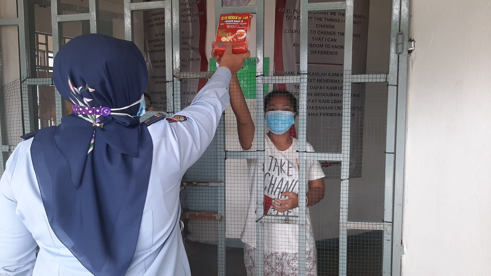 KOTA TANGERANG – Petugas Lapas Perempuan Kelas IIA Tangerang membagikan ekstrak jahe merah sebagai salah satu upaya untuk meningkatkan stamina warga binaan di masa pandemi covid-19.