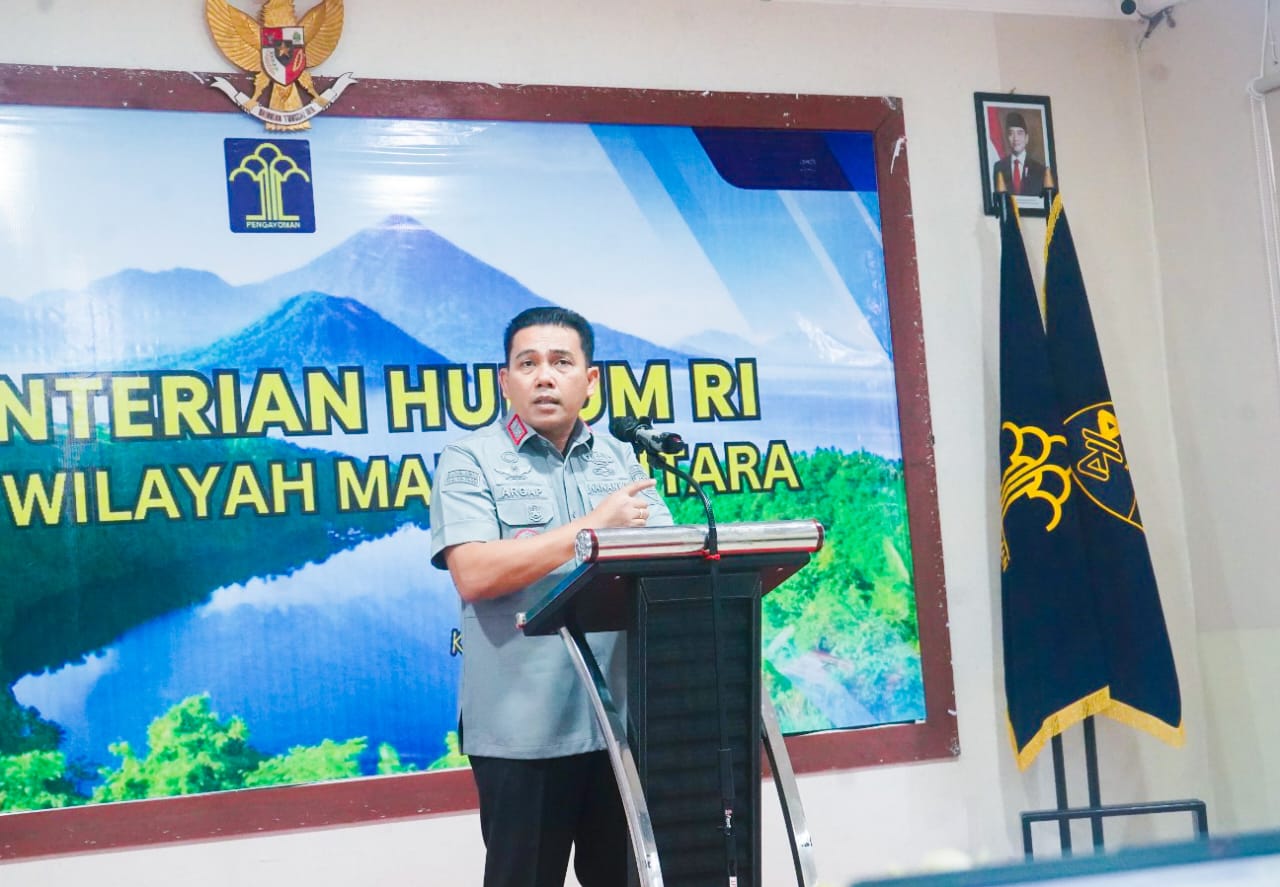 “Fenomena masifnya industri perumahan dan pertambangan yang secara langsung maupun tidak lansung menggerus ketersediaan lahan untuk kebutuhan pertanian sebagai sumber pangan masyarakat, patut menjadi perhatian kita semua, khususnya dalam mengkaji dari perspektif dan evaluasi hukum menyangkut efektivitas regulasi,” tegas Argap Situngkir di aula Gamalama Kanwil, Selasa (15/7).