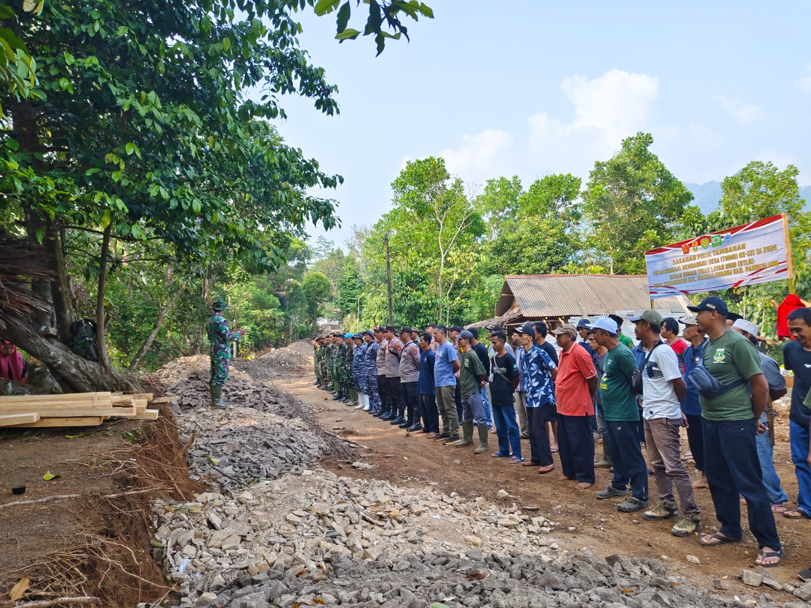 Memasuki Hari ke 23 pelaksanaan kegiatan TMMD 121 Kodim 0601/ Pandeglang, sebelum melaksanakan kegiatan Komandan SSK Satgas TMMD 121 Kodim 0601/Pandeglang Kapten Inf. Supriatin melaksankan apel pagi bertempat di Posko TMMD kampung Nanggorak desa Cikumbueun Kecamatan Mandalawangi, Kamis (15/08/24).