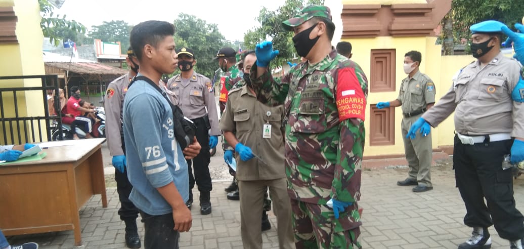 Kapten Infanteri Dedi Bonar Sirait “ ia menjelaskan, bahwa pengecekan protokol kesehatan masyarakat juga sebagai tindak lanjut dari penerapan pembatasan sosial berskala besar (PSBB) yang kini berlaku di seluruh kabupaten/kota se-Provinsi Banten sesuai Keputusan Gubernur Banten Nomor 443/Kep.209-Huk/2020 tentang Penetapan PSBB di Provinsi Banten Dalam Rangka Percepatan Penanganan Covid-19. “ Tuturnya.