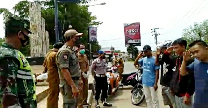 “Untuk hari ini ada 32 orang pelanggar yang terjaring tidak menggunakan masker. Sebagai bentuk sanksi para pelanggar disuruh merentangkan tangan, mengucapkan Pancasila dan mengambil sampah yang ada di sekitar lokasi, sementara itu sanksi sosial yang kita terapkan kepada masyarakat yang melanggar,” Kata Zainul, Selasa (15/9/2020).